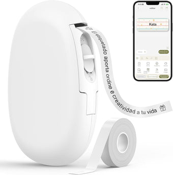 SUPVAN Etiquetadora E10 con Etiqueta, Impresora Etiquetas Autoadhesivas, App Inteligente KATASTMBOL 40+ Fuentes, 150+ Plantillas & 700+ Iconos, Imprima Etiquetas Personalizadas, Blanco