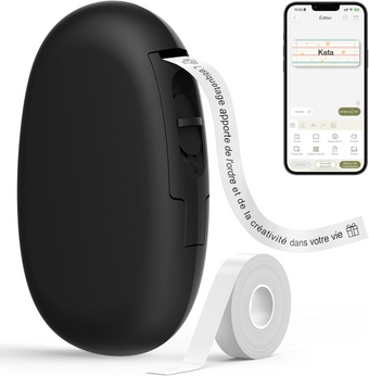 SUPVAN E10 Etiqueteuse avec 3 d'étiquettes, imprimante d'étiquettes Autocollantes, Application Intelligente 40+ Polices, 150+ modèles et 700+ icônes, Impression d'étiquettes personnalisées, Noir