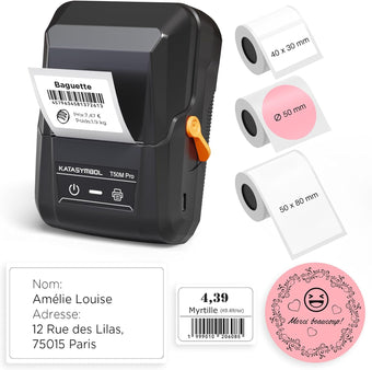 SUPVAN Etiqueteuse T50M Pro, Étiqueteuse Autocollante contien 3 Rouleau Étiquettes Imperméables, Imprimante Etiquette Autocollante Thermique, Smart App 40+ Polices 700+ Icônes
