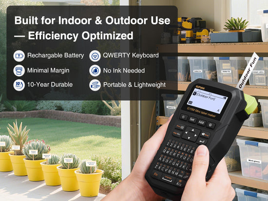 • Rechargeable & Portable: Features a built-in 1200 mAh rechargeable battery with up to 3 months of use on a single charge; lightweight (400g) and compact (8.5cm x 17cm x 4.3cm); ideal for on-the-go labeling