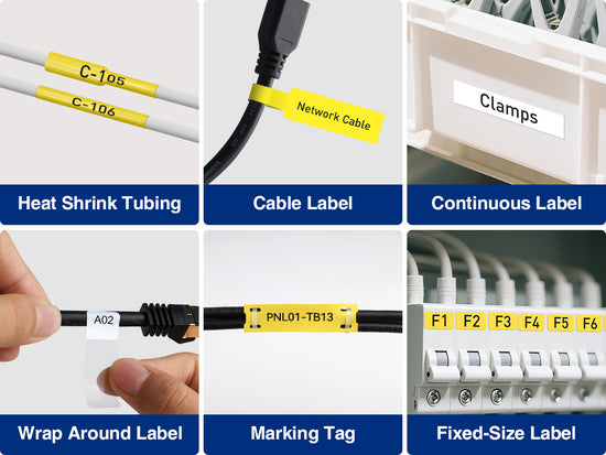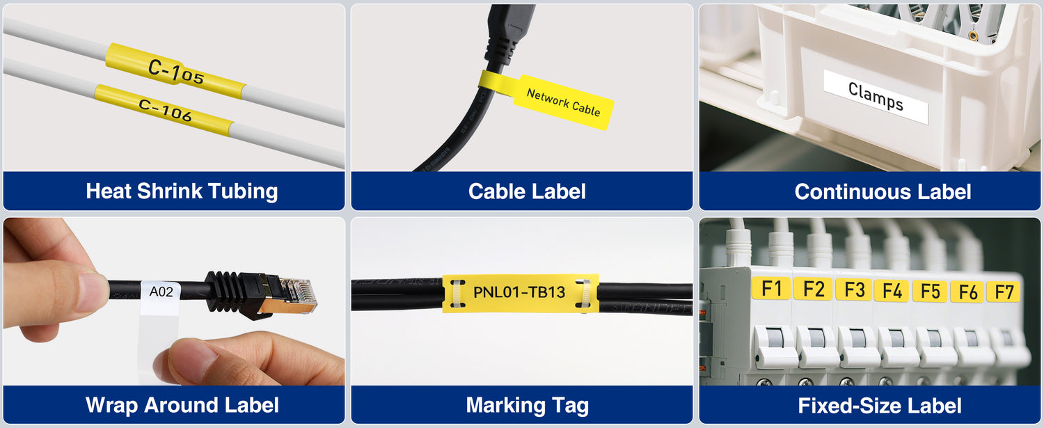 Multi-Type Label Compatibility: Supports heat-shrink tubes, continuous labels, fixed-size labels, and cable labels; ideal for home, garage, and office organization